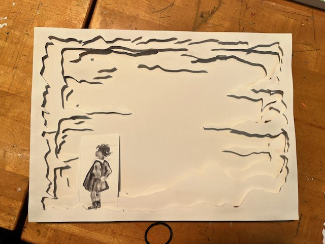 We are halfway through this project and all I've managed so far is cutting out the paper to create the canvas. The background is supposed to be a sky, so I've tried to make the edges look like clouds. The figure is a child, holding their hands behind their back. One issue I've had so far is deciding how to paint them. I like the idea of a silhouette but I also need the hands to be visible instead of completely not depicted in the black. Right now I'm thinking of making the edges totally black and then just shading on the hands part (which is not what is pictured above) so people can see it. Right now I do not like how the figure is looking, but I painted that in 10 minutes so I can easily redo it. Another thing I'm worried about is whether I should add 3D clouds to the middle too. The clouds are going to be connected to the child's hands with string, so it makes sense for then to stand out. I'm just concerned that it could look odd. The teacher goal I had was to research watercolor techniques so next class I will do that before I paint.